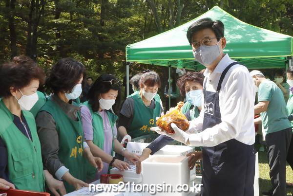 지난 7일, 구는 오금공원에서 새마을부녀회(회장 박명숙)와 함께 저소득 한부모 가정, 홀몸어르신 300가구를 대상으로 계절김치 나눔 행사를 열었다.