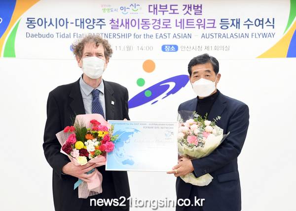 시청 제1회의실에서 이날 열린 인증서 수여식에는 윤화섭 시장, 더그 왓킨스(Doug Watkins) EAAFP 대표 등 관계자가 참석해 ‘세계철새의 날’이었던 지난 9일 등재된 대부도갯벌의 철새 서식지로의 국제적 가치와 보존·관리에 대해 논의했다.