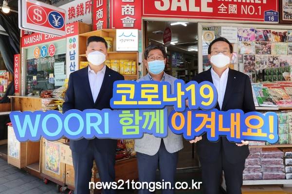 손태승 우리금융그룹 회장과 권광석 우리은행장은 지난 8일 본사 인근에 소재한 남대문시장을 함께 방문해 시장 상인의 영업상황을 경청하고, 전통시장 상품권을 사용해 물품을 구입했다.