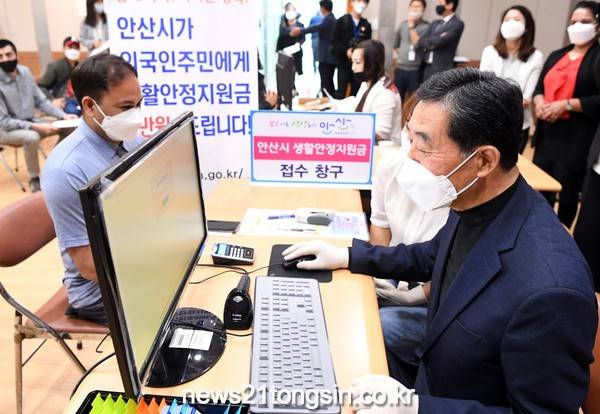 윤화섭 안산시장은 외국인 주민을 대상으로 생활안정지원금 현장 접수가 시작된 지난 11일 접수창구를 찾아 “불편을 최소화하고, 신속히 지원되도록 노력하겠다”고 말했다.