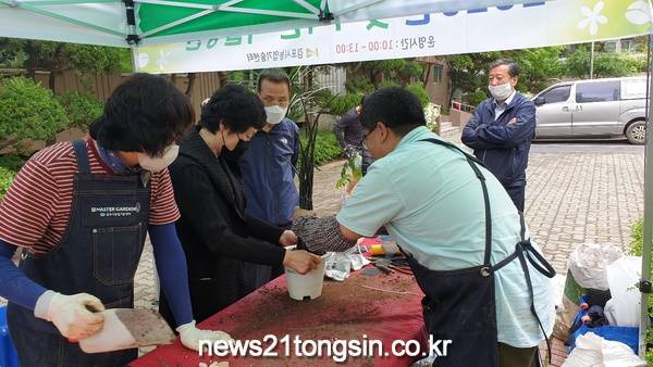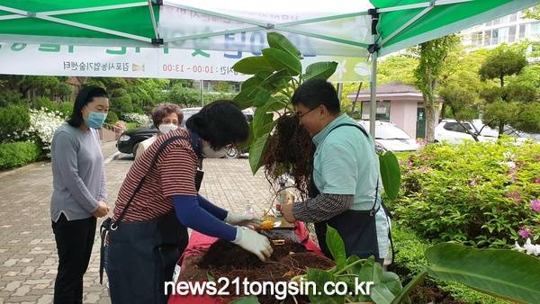 찾아가는 식물병원은 아파트 단지를 찾아가 집안에서 키우는 화분관리 방법, 분갈이 방법, 병해충 방제법 등 다양한 식물관리 방법에 대한 정보를 제공해 손쉽게 식물을 키우는데 도움을 주고 있다.
