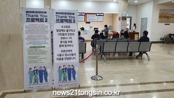 시흥시청수년수련관(관장 윤승일)에서는 코로나19 국민안심병원 및 검체채취 가능 진료소로 지정되어 코로나-19 종식을 위해 힘써주신 의료진들에게 청소년들의 감사 메시지와 함께 소정의 간식을 전달하는 “THANK YOU-프로젝트 2차” 를 진행했다.