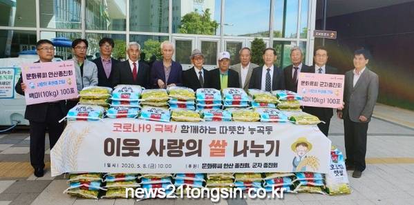 시흥시 능곡동 행정복지센터(동장 김병무)에서 지난 8일 문화류씨 안산·군자 종친회(회장 류호승)가 후원한 백미(10kg) 200포를 전달하는 기탁식을 가졌다.