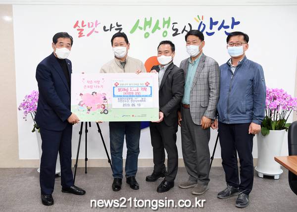 기탁에 참여한 농협안산공판장, 안산농산물㈜, 안산수산㈜, 안산식자재마트 ㈜성한 대표 등은 쌀 150포(각 10㎏·450만원 상당)를 모아 코로나19로 지친 시민들에게 희망을 주기 위해 후원품을 마련했다.
