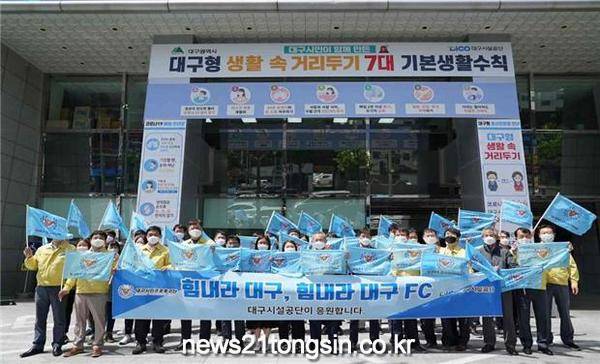 (대구=뉴스21통신) 유재원기자 = 대구시설공단은 코로나19로 인해 무관중 경기가 열리는 대구FC 경기를 응원하기 위한 캠페인을 펼쳤다.