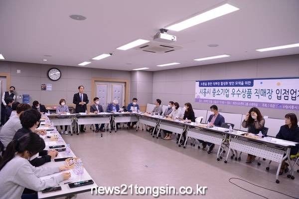 시흥시(시장 임병택)가 중소기업 우수상품 직매장 발전방향의 모색하기 위해 꾸준히 노력하고 있다. 시흥시는 시흥시기업인협회(회장 원영길) 회원사 소비재업체와 직매장 운영에 따른 현황을 설명하고 이에 따른 의견과 건의 등을 취합해 논의하는 간담회를 지난 13일 개최했다.