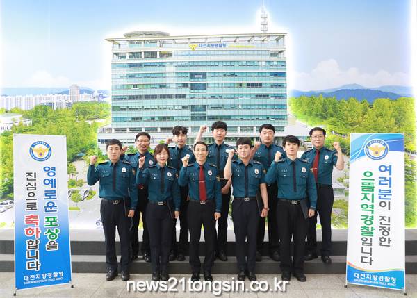 대전지방경찰청(최해영 청장)은 5. 19.(화) 제복을 입은 시민상 정립을 위해 현장에서 묵묵히 소임을 다하고 있는 중부서 유등지구대 신미경 경위 등 7명의 경찰관에 대해 포상을 실시하였다.