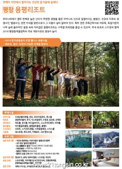 한편, 강원도는 코로나 조기극복 및 강원관광 회복을 위해 중앙부처 국비사업에 공모하여 ‘웰니스관광 클러스터’를 비롯한 4개사업에 연달아 선정되어 국비 총21억원을 확보하는 큰 성과를 거두었다.