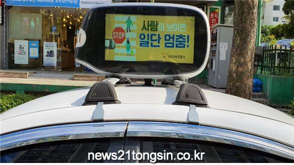의탑 광고판에 교통안전 홍보문구를 현출함으로써 보행자 교통사고예방 홍보에 나섰다고
