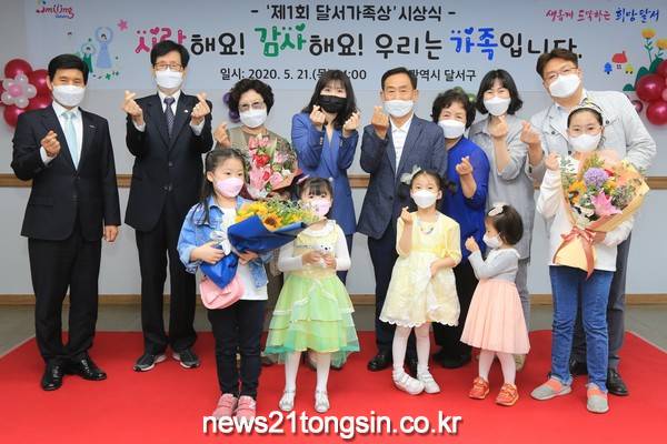 (대구=뉴스21통신) 박창남 기자 = 대구 달서구는 5월 21일 오후 2시 4층 회의실에서 5월 가정의 달을 맞이하여, 가정의 소중함을 고취하고 가족친화적인 사회분위기 조성을 위해 바람직한 가족문화의 모범이 되는 3가족을‘달서가족상’수상자로 선정해 시상식을 가졌다.