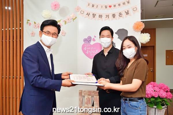 5월 21일 첫 번째로 혼인신고를 마친 신혼부부에게 구청장이 직접 쓴 편지를 전달하고, 구청 2층 민원실에 마련된 포토존에서 기념촬영을 진행했다. 손편지에는 뜻깊은 날 부부간 된 것을 축하하며 ‘두 사람이 손잡고 걸어갈 길이 5월의 눈부신 햇살처럼 반짝이길 소망한다.’는 등의 내용이 담겼다.