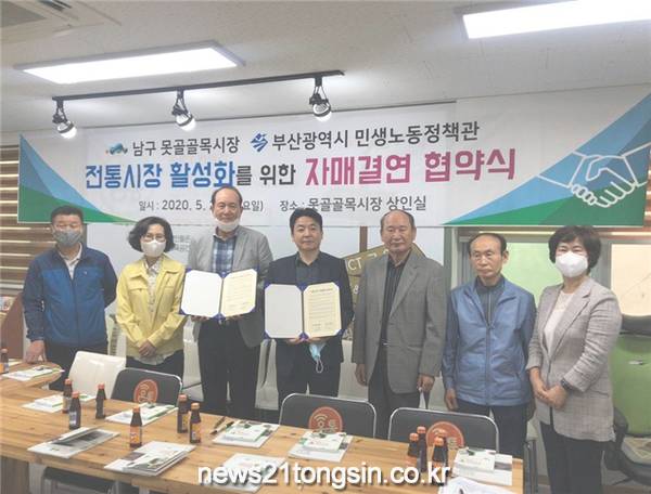 5월 20일 부산시 민생노동정책관과 자매결연 협약을 체결한 남구 못골골목시장 상인회(회장 박기홍)는 “코로나19로 지역 상인들의 어려움이 크지만 이렇게 부산시나, 구청에서 방역물품 지원이나 자매결연 체결 등으로 전통시장 활성화를 위해 노력하는 모습에 감사드린다.”면서 “요즘 재난지원금으로 전통시장이 모처럼 잔치 분위기다. 이런 분위기라면 코로나19를 조기 극복하고, 예전의 활기찬 전통시장으로 금방 돌아갈 수 있을 것 같다.”라고 말했다.