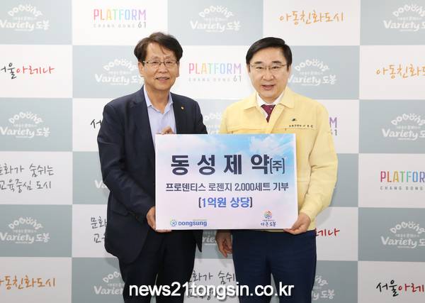 도봉구(구청장 이동진)는 5월 가정의 달을 맞아 지난 21일 지역 내 제약기업인 동성제약(대표이사 이양구)으로부터 어르신들의 구강 건강 강화에 도움이 되는 1억원 상당의 프로바이오틱스 비타민(바이오가이아 프로덴티스 로젠지 프로바이오틱스) 2,000세트를 후원받았다.