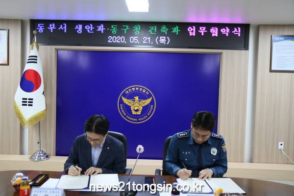 대전동부경찰서(서장 이교동)는 지난 21일 생활안전과장, 동구청 건축과장 등 10여 명이 참석한 가운데 범죄예방 환경개선을 위한 업무협약을 체결했다.