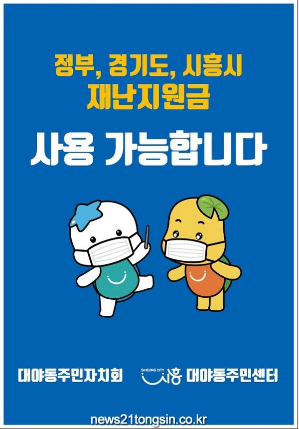 대야동주민센터(마을자치과장 최각용)와 대야동주민자치회(회장 유보숙)는 코로나 19로 인해 위축된 지역경제 회복을 위하여 지급된 「경기도·시흥시 재난기본소득」과 「정부형 긴급재난지원금」의 사용처를 알리는 홍보물을 제작해 지역에 배부하는 활동을 전개하고 있다.