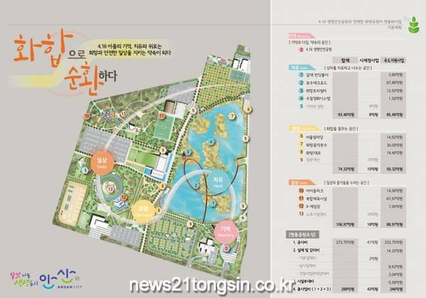 지난해 9월 정부(국무조정실) ‘4·16 세월호참사 피해자 지원 및 희생자 추모위원회’가 의결한 ‘안산시 추모시설 건립 계획’에 따라 ‘화합으로 순환하다’라는 테마로 추진되는 화랑유원지 명품화 리모델링 사업은 ▲기억과 다짐, 약속의 공간(생명안전공원) ▲상처를 치유하고 나누는 공간 ▲화합을 꿈꾸는 공간 ▲일상의 즐거움을 누리는 공간 등 4개의 주제로 289억(국 208억·도 40억·시 41억) 원이 투입돼 화랑유원지 61만8천여175㎡에서 진행된다.