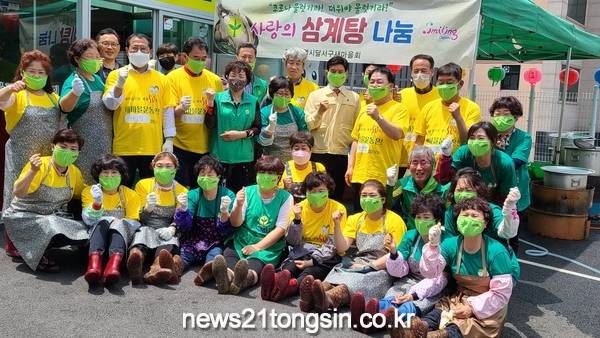 (대구=뉴스21통신) 박창남 기자 = 달서구새마을회(회장 장병철)는 지난 26일 오전 9시부터 선재공덕회(송현동 소재)에서 소외계층 600세대에 삼계탕을, 200세대에 밑반찬을 직접 만들어 전달했다.
