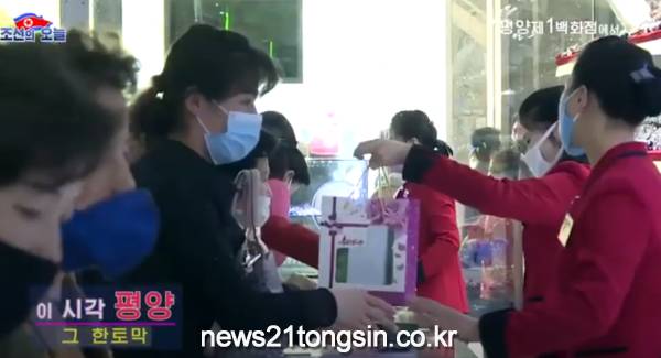 북한 대외선전매체 '조선의 오늘'은 29일 쇼핑객들로 붐비는 평양 제1백화점의 모습을 공개했다.