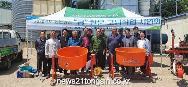 이천시는 올해 신둔콩작목반의 콩 생산단지 약 16ha에 2,000만원의 사업비를 투입하여 종자코팅기, 코팅제 및 파종기등을 지원하였으며 27일 종자코팅기를 활용한 철분코팅 시연회를 개최함으로써 작목반 회원들에게 철분코팅 시범사업의 우수성을 알렸다.