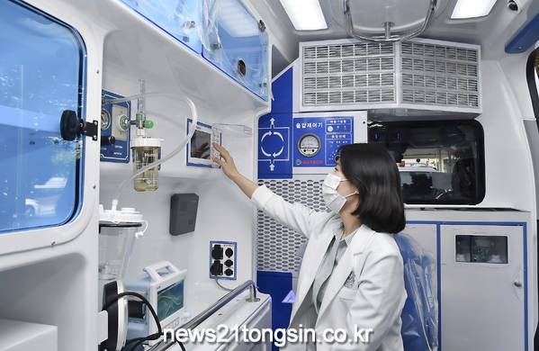 또 환자 감시 장치 등 환자 평가용 의료 장비, 기도 확보 유지 등 응급처치용 의료장비, 응급 의료 정보 통신 장비 등이 탑재돼 있어 코로나19 확진환자 발생시 신속하고 안전한 대처에 용이할 것으로 보고 있다.