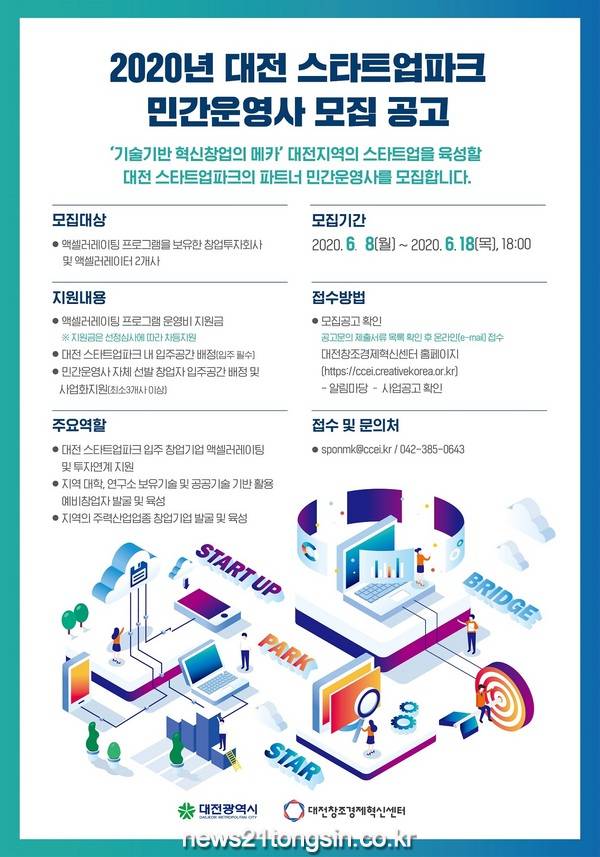 대전시가 오는 18일까지 대전 스타트업파크에 입주할 유망 창업기업을 발굴ㆍ육성해 유니콘 기업으로 키워낼 전문 민간운영사(창업투자회사 및 액셀러레이터)를 모집한다.