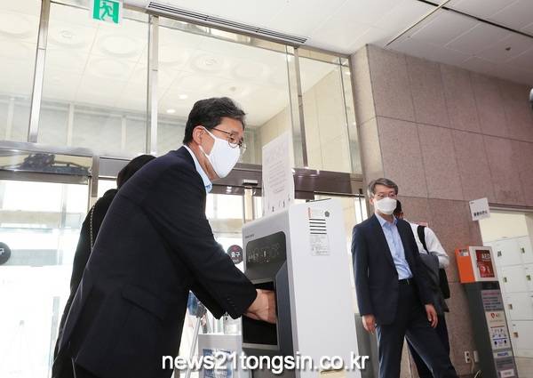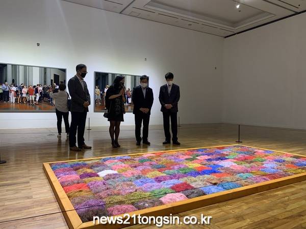 박양우 문화체육관광부 장관이 9일 오후 대전시립미술관을 방문해 ‘생활 속 거리두기’ 이행상황을 살펴보고, 대전시립미술관 <</span>이것에 대하여> 전시를 관람했다.