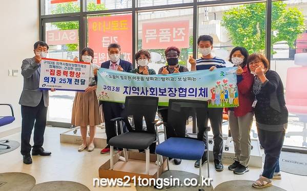광진구(구청장 김선갑)가 9일 구의3동 지역사회보장협의체와 함께 구의3동에 거주하는 취약계층 고등학생 25명에게 학습용 의자를 전달했다.