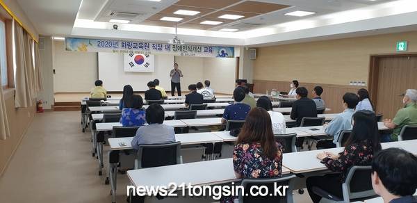 화랑교육원(원장 장석기)은 6월 10일(수) 전 직원을 대상으로 경북장애인식개선지원센터 윤주애 대표를 초청하여 직장 내 장애인식개선교육을 실시하였다.