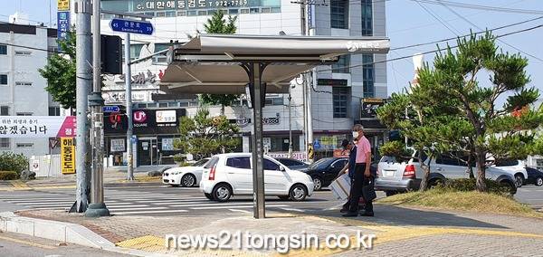(경북=뉴스21통신) 유재원기자 = 칠곡군은 보행자들이 많은 네거리 횡단보도에‘그늘막 쉼터’16개소를 설치해 9월30일까지 운영한다.