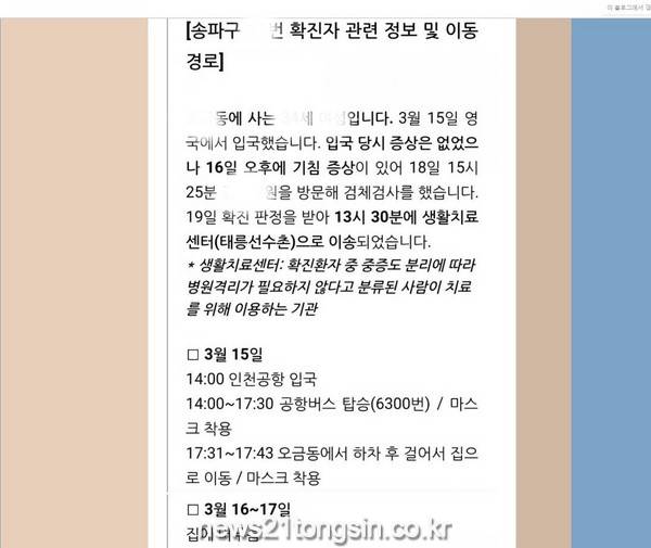 한편, 코로나19 확진자의 동선정보(감염경로, 이동경로 등)는 질병관리본부 지침(코로나19 확진환자 이동경로 등 정보공개 안내 2판)에 따라 확진자가 마지막 접촉자와 접촉한 날로부터 14일 경과 시 삭제하도록 하고 있다.