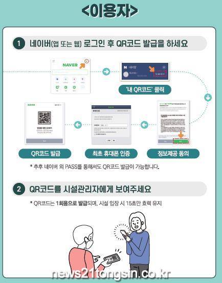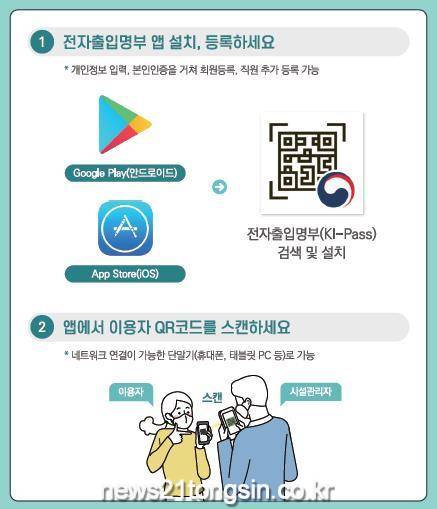 사람들의 출입이 잦은 고위험 다중이용시설에 QR코드 기반 전자출입명부 시스템 도입지난 6월 10일부터의무화 되었다. 도서관은 자율도입 대상 시설이나 시흥시중앙도서관 은 전자출입명부 시스템을 선도적으로 도입해 신종 코로나바이러스 감염증(코로나19) 집단 감염 예방에 앞장서기로 했다.