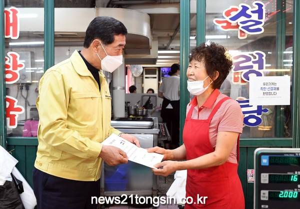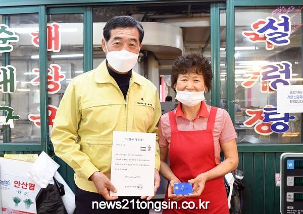 윤 시장은 식당가게에서 선결제를 한 뒤 영수증 인증샷을 촬영하는 등 착한소비를 촉진하는 선결제 캠페인을 적극 알렸다.