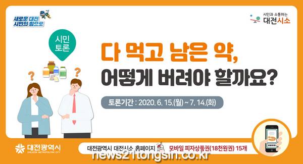 대전시는 시민참여 플랫폼 ‘대전시소(daejeon.go.kr/seesaw)'에서 "다 먹고 남은 약, 어떻게 버려야 할까요?”라는 주제로 온라인 공론장을 연다고 15일 밝혔다.