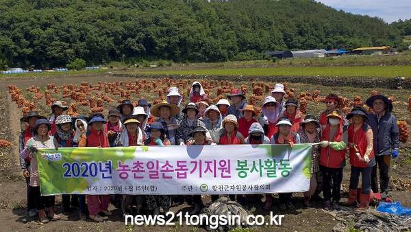 합천군자원봉사협의회(회장 이정임)는 지난 15일 이정임 회장과 회원 50명이 참여한 가운데 농협중앙회 합천군지부(지부장 류길년)와 함께 합천군 삼가면 인평마을에서 양파수확 일손돕기 봉사활동을 실시했다.