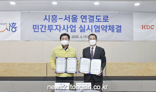 시흥시(시장 임병택)가 서해안로 교통체증을 해소하기 위해 HDC현대산업개발㈜과 시흥~서울 연결도로 민간투자사업을 위한 실시협약을 체결하고 본격적으로 사업을 추진한다.