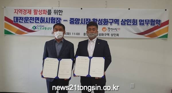 대전운전면허시험장(장장 문정식)은 지역의 침체된 지역 전통시장을 활성화하고 함께하는 동반성장의 실천으로 사회적 가치 실현을 위해 지역 전통시장인 중앙시장 활성화구역 상인회(회장 박황순)와의 업무협약을 체결 하였다.