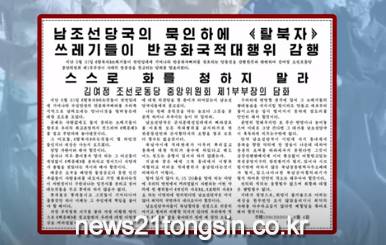 신문은 대북 전단 살포를 두고 '사실상의 선전포고'라고 표현하며 "신의와 약속을 헌신짝처럼 저버린 것이 누구인데 저들이 빚어낸 사태의 책임까지도 우리에게 뒤집어씌우려고 오만불손하게 놀아대느냐"고 반문했다.