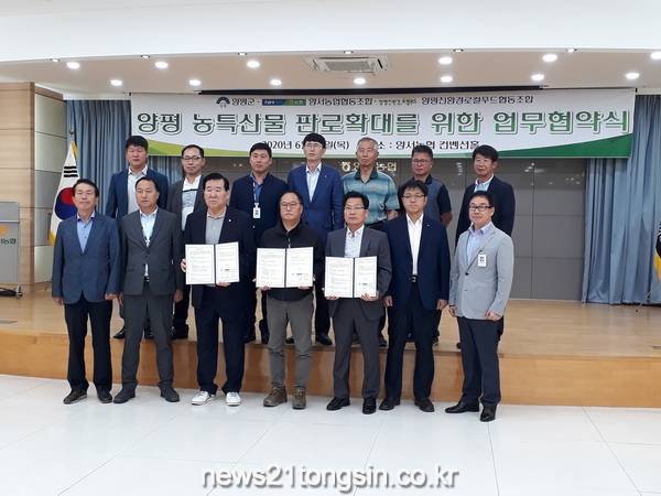 양평군-양서농업협동조합-양평친환경로컬푸드협동조합은 2020년6월18일(목) 11시30분양서농협 회의실에서 양평농특산물 판로확대를 위한 업무협약식을 가졌다.