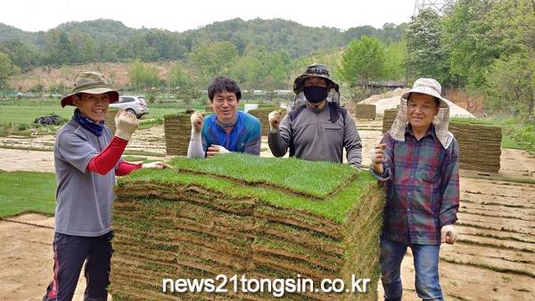 시흥시(시장 임병택)는 잔디농가 육성사업의 성과로 목감동 잔디농가에서 생산된 한지형잔디(스포츠잔디)를 처음으로 출하하였다고 15일 밝혔다.