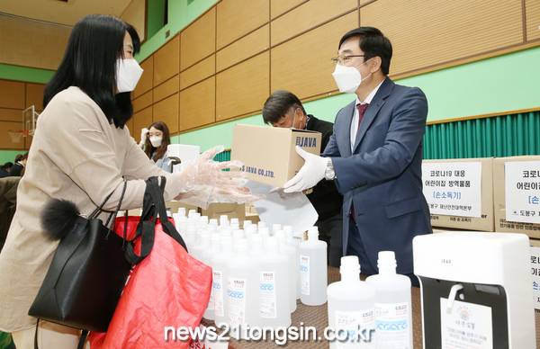 구는 감염병에 취약한 영유아를 보육하고 있는 어린이집을 대상으로 4월 29일 아동용마스크 12,273개, 교직원용마스크 3,550개, 면마스크 10,728개, 자동손소독기 215개, 손소독제 260개, 비접촉식체온계 265개를 지급했으며, 6월 4일에도 손소독제(1L) 3,753개를 긴급으로 지원한 바 있다.