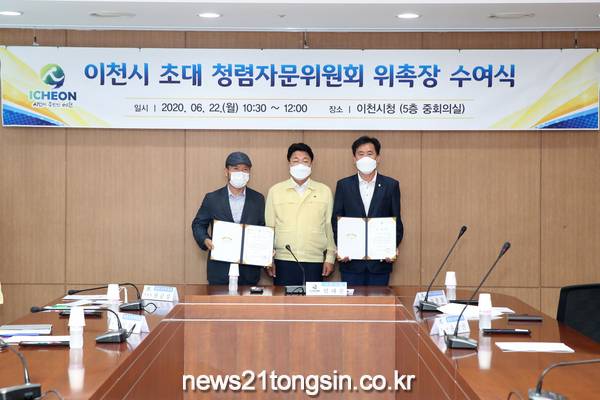 이천시(시장 엄태준)는 22일 이천시청 부시장 권금섭(청렴자문위원회 위원장)을 비롯한 제1기 청렴자문위원회 위원 3명에게 위촉장을 수여했다고 밝혔다.