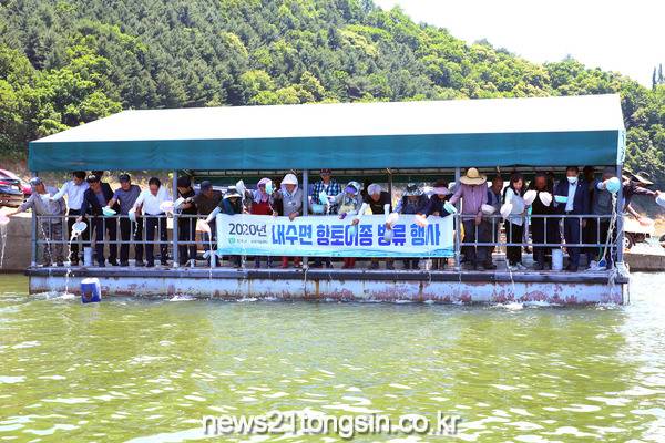 인제군농업기술센터는 22일 남면 부평리 선착장에서 최상기 인제군수, 농업기술센터 관계 공무원 및 지역 어민 등 20여명이 참석한 가운데 뱀장어 66,330마리, 쏘가리 20,555마리 등 향토어종 방류행사를 진행했다.