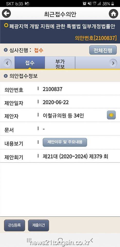 이 의원에 따르면 대개의 법률안은 여와 야, 지역간에 찬,반 양론이 있으나 이번 폐특법 개정안엔 여,야를 불문하고 강원도 지역구의원 모두와 영남과 호남지역 의원들도 적극 동참했다.