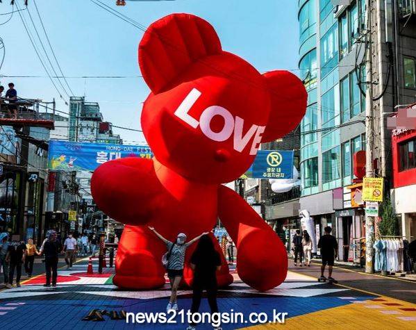 마포구(구청장 유동균)는 오는 7월 8일까지 마포구 어울마당로 홍대 축제거리광장에 유명 팝 아티스트 임지빈 작가와 협업한 대규모 설치 미술 프로젝트를 선보인다고 24일 밝혔다.