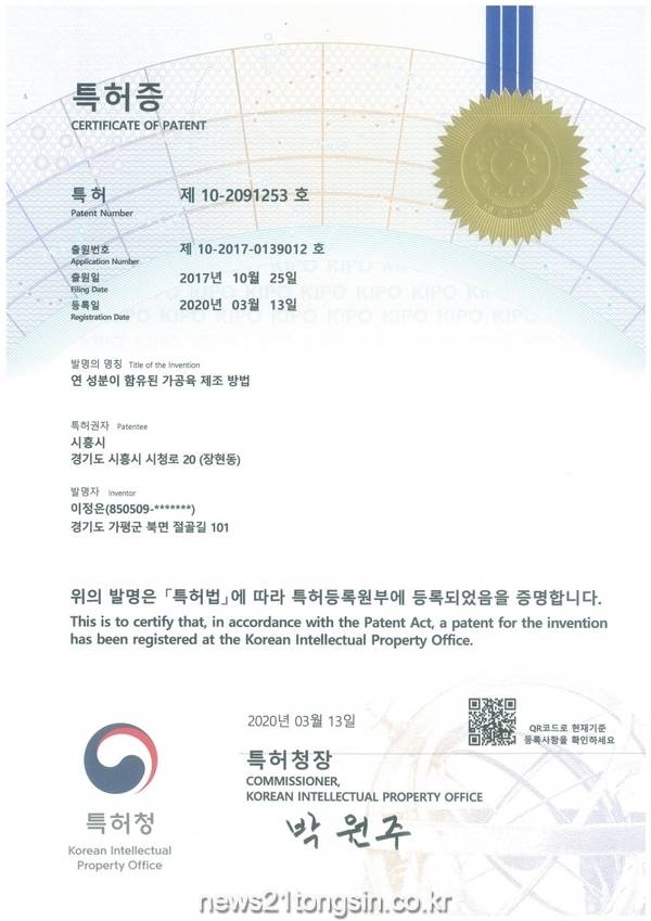시흥시(시장 임병택)는 연(蓮)가공품 개발 사업의 일환으로 시유특허 연 성분이 함유된 가공육 제조 방법(제10-2091253호)을 등록했다.