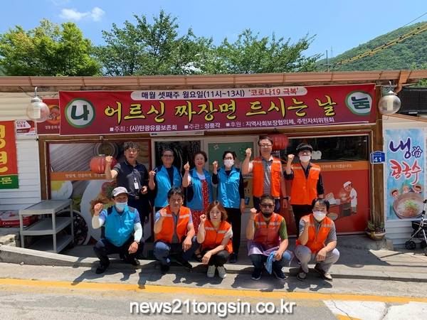 (사)탄광유물보존회(회장 김성하)는 22일 오전 11시부터 장성동 소재 정풍각에서 코로나19 극복을 위한 ‘어르신 짜장면 드시는 날’ 행사를 개최했다.