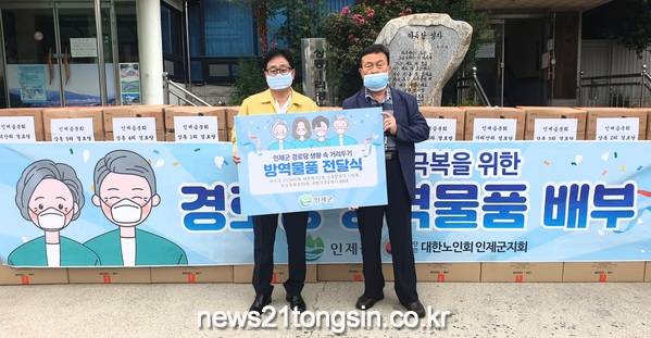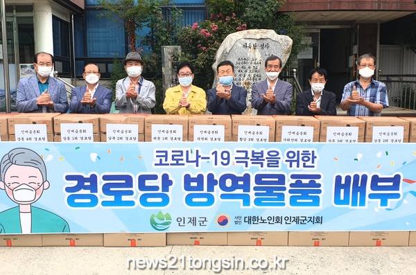 군은 24일 대한노인회 인제군지회 1층에서 최상기 인제군수, 박기선 대한노인회인제군지회장 및 각 읍・면별 분회장 등이 참석한 가운데 ‘코로나19 감염병 예방을 위한 방역물품 전달식’을 가졌다.