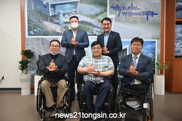 (대구=뉴스21통신) 유재원기자 = 대구광역시장애인체육회(이하 시장애인체육회)는 지난 23일 코로나19로 인해 훈련 및 생활에 어려움을 겪고 있는 지역 장애체육인들을 격려하고자 이명호 대한장애인체육회장이 전격 방문했다.