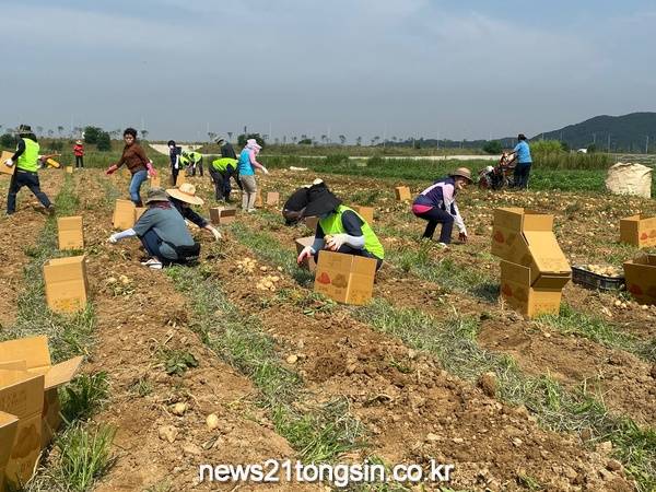 이번 수확 작업에는 농업인학습단체(시흥시4-H지도자협의회, (사)한국생활개선시흥시연합회) 회원 20여명이 참여했으며, 시흥시의회 송미희 자치행정위원장, 시흥시농업기술센터, 농협시흥시지부(지부장 김성현) 20여명 또한 나눔 활동을 위한 감자 수확에 동참했다.