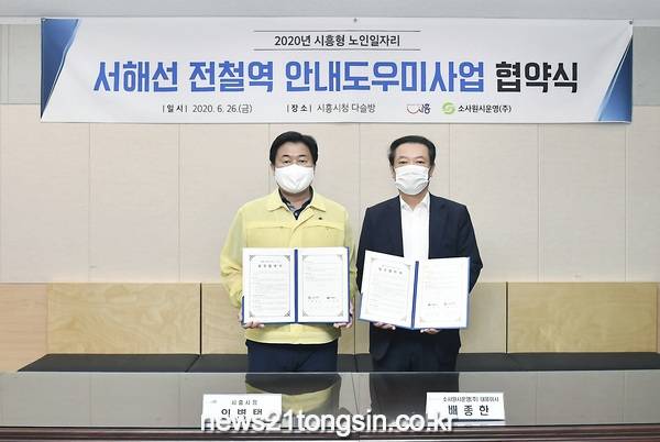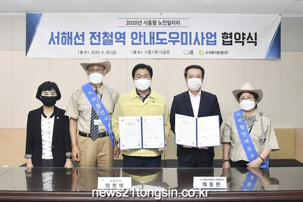 시흥시(시장 임병택)는 6월 26일 시청 다슬방에서 소사원시운영(주)(이하‘소사원시’)와 노인일자리 창출을 위한 서해선 전철역 안내도우미 사업 협약을 체결했다.